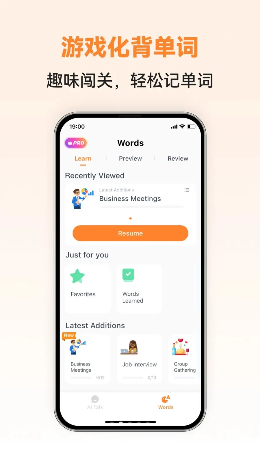 2. 提供多样学习途径,通过AI个性化对话课程、趣味互动练习、真实场景模拟和游戏化词汇记忆。