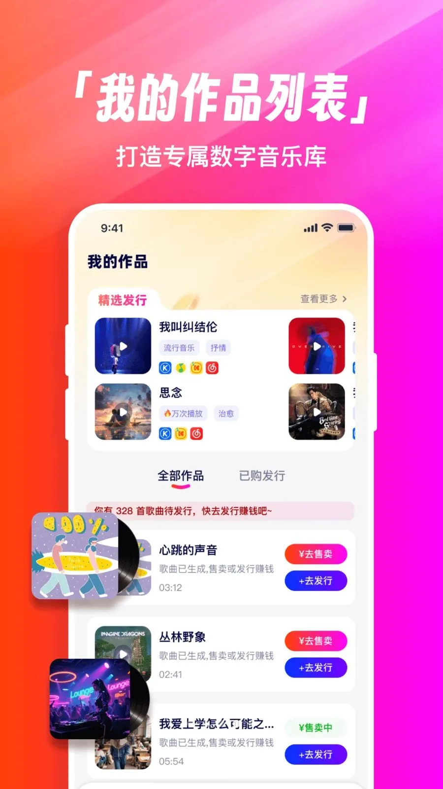 2. 一键发行到 QQ 音乐、网易云音乐等主流平台,坐享版权收益与流量分成。
