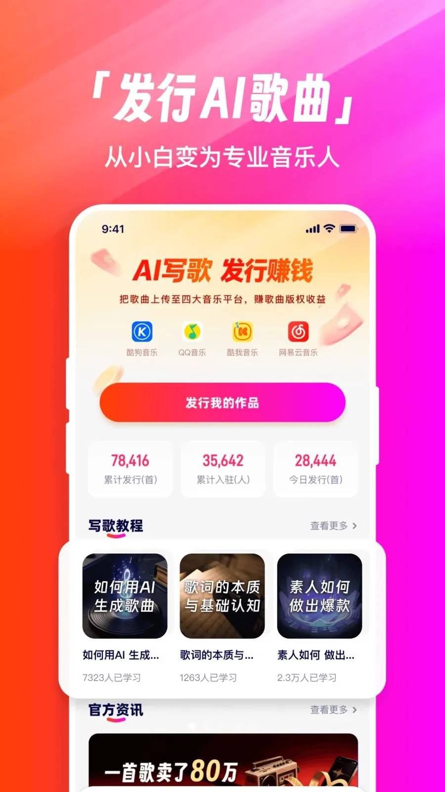 4. 全新版本,全新出发,帮音乐小白、短视频创作者及音乐变现爱好者轻松实现写歌自由。