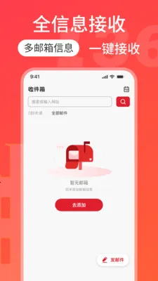 3、收件箱、草稿箱、已发送、已删除分类清晰,一键添加邮箱,整理更有序。