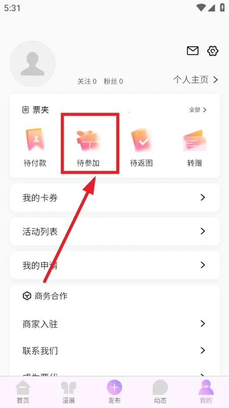 1、登录账号之后进入软件首页,点击底部漫展入口。