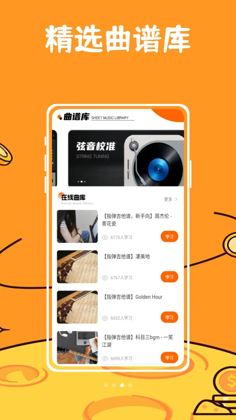 4. 界面简洁直观,操作流畅,能带来无干扰的专注使用体验,集调音、教学、曲谱于一体,提供可靠支持。