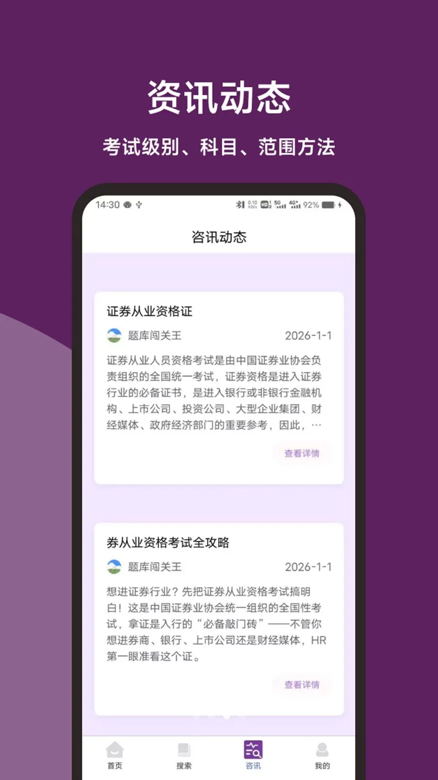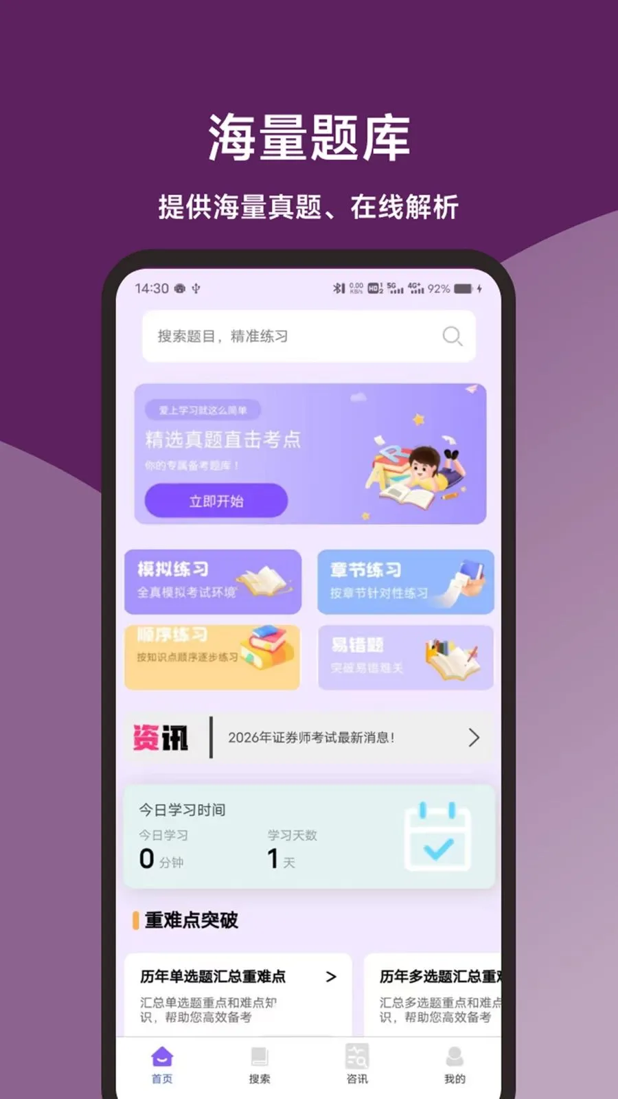 全新UI设计提升了用户体验,无论是零基础小白还是金融从业者等不同人群,都能借助它更好地备考证券从业考试。