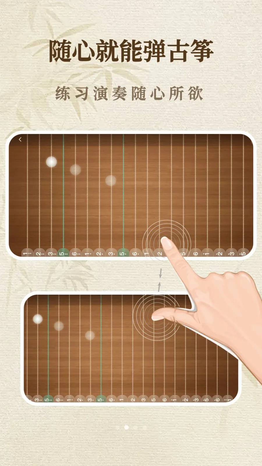 1. 专为古筝爱好者零基础新手打造,操作简单功能齐全,随时随地享受弹古筝乐趣。