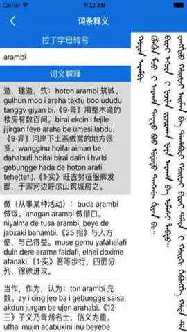 你是否需要一个能随时在线查询满语翻译的工具呢?咱有一款超棒的满语翻译器就能满足你!它可以实现满语与汉语、英语等多语种间的互译。不管是文本还是语音输入方式都支持,还有真人发音功能,能让你听到标准读音并跟读模仿,辅助口语学习超有效。它内置了详实的满语词典和丰富的实用例句库,方便你随时查询单词释义和用法。而且这软件优势多多,离线就能用,响应超快,没网络也不耽误。完全免费无广告,手机、平板、电脑等设备都能兼容。界面简洁又人性化,还有历史记录和个性化设置。词库与功能定期更新,始终保持活力。有了它,满语学习和查询都更高效便捷啦,简直是满语学习者的贴心好帮手!