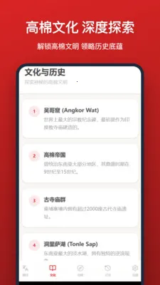 2. 内置柬埔寨文化知识储备,涵盖历史脉络、民俗风情等,助用户深入领略当地文化底蕴。