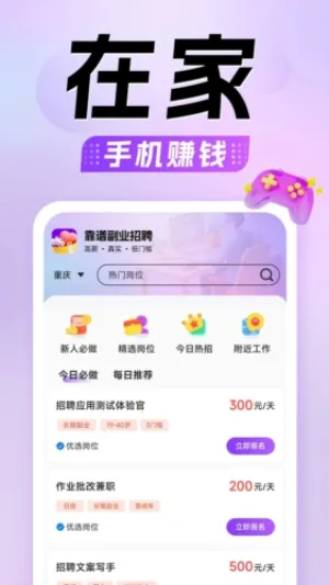 如果你想找兼职,又担心不靠谱,那懒人兼职app或许能解决你的烦恼。它专为学生、宝妈、白领等群体打造,有超多兼职岗位。岗位覆盖7大类近百种,信息经过5重审核,真实优质有效。这里有日结兼职,薪资发放及时。像语音主播、优惠券代理等多种岗位,能满足各种在家工作场景。软件还有很多贴心功能,比如能投递简历、查看详细兼职信息、了解工作地点,输入职位名称还能快速搜索。而且每天会自动推荐职位信息。商家发布招聘需上传营业执照经审核才行,每个兼职岗位也都经过审核。客服小姐姐7到12小时在线处理问题,24小时极速处理。在这里找兼职,能让你放心又方便,轻松开启副业赚钱之路。
