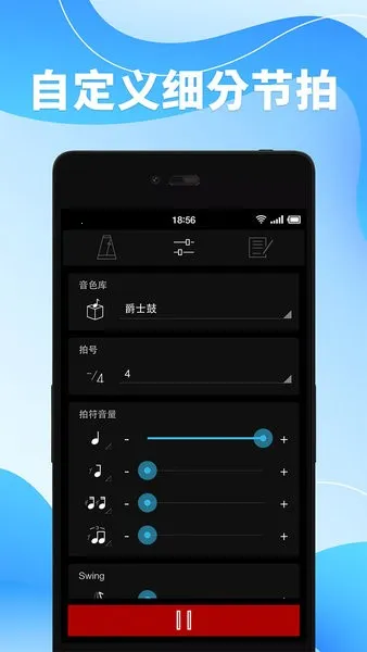 2. 多种不同节奏供选择,节奏精准,比物理节拍器更好用。
