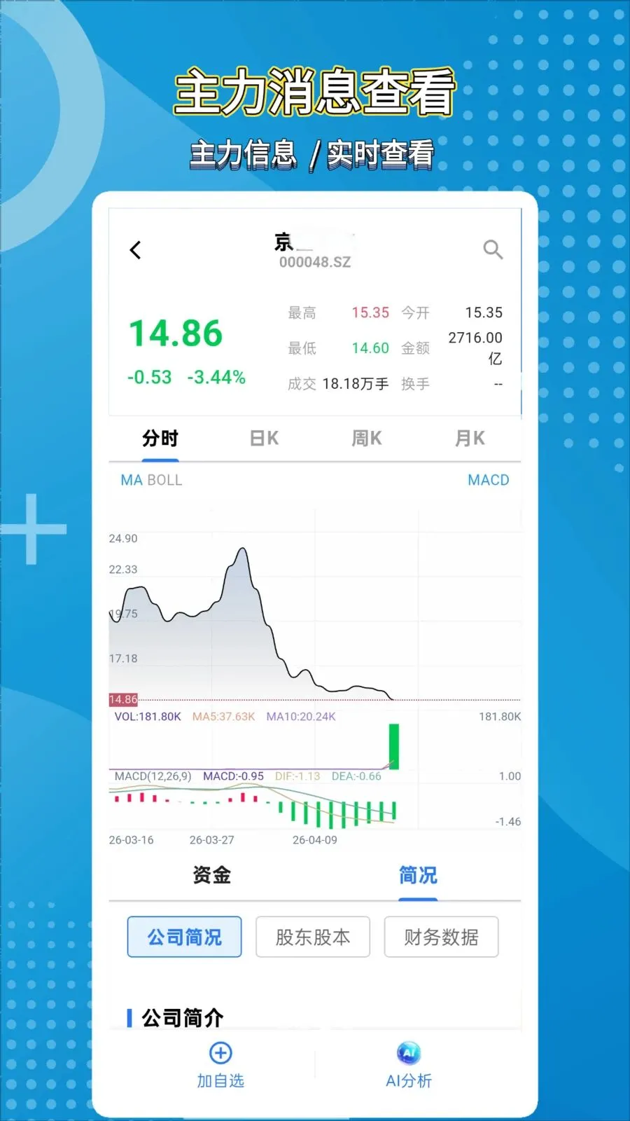 个股详情页技术面与基本面全覆盖,搭配专业指标,走势清晰,还能留存AI智能分析报告,方便复盘。