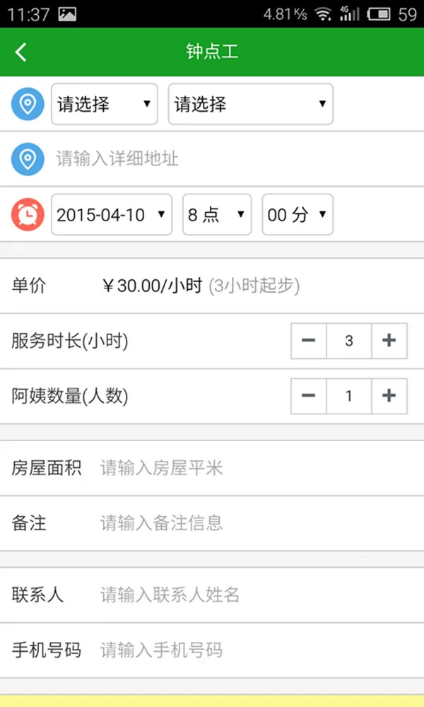4. 预约保姆月嫂等服务,填写基本信息发布需求就能立刻得到回应,省去逐个打电话烦恼。