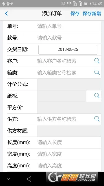 2. 输入纸箱规格,电脑自动算出纸板用料规格、单价、面积等,自动生成多种单据。