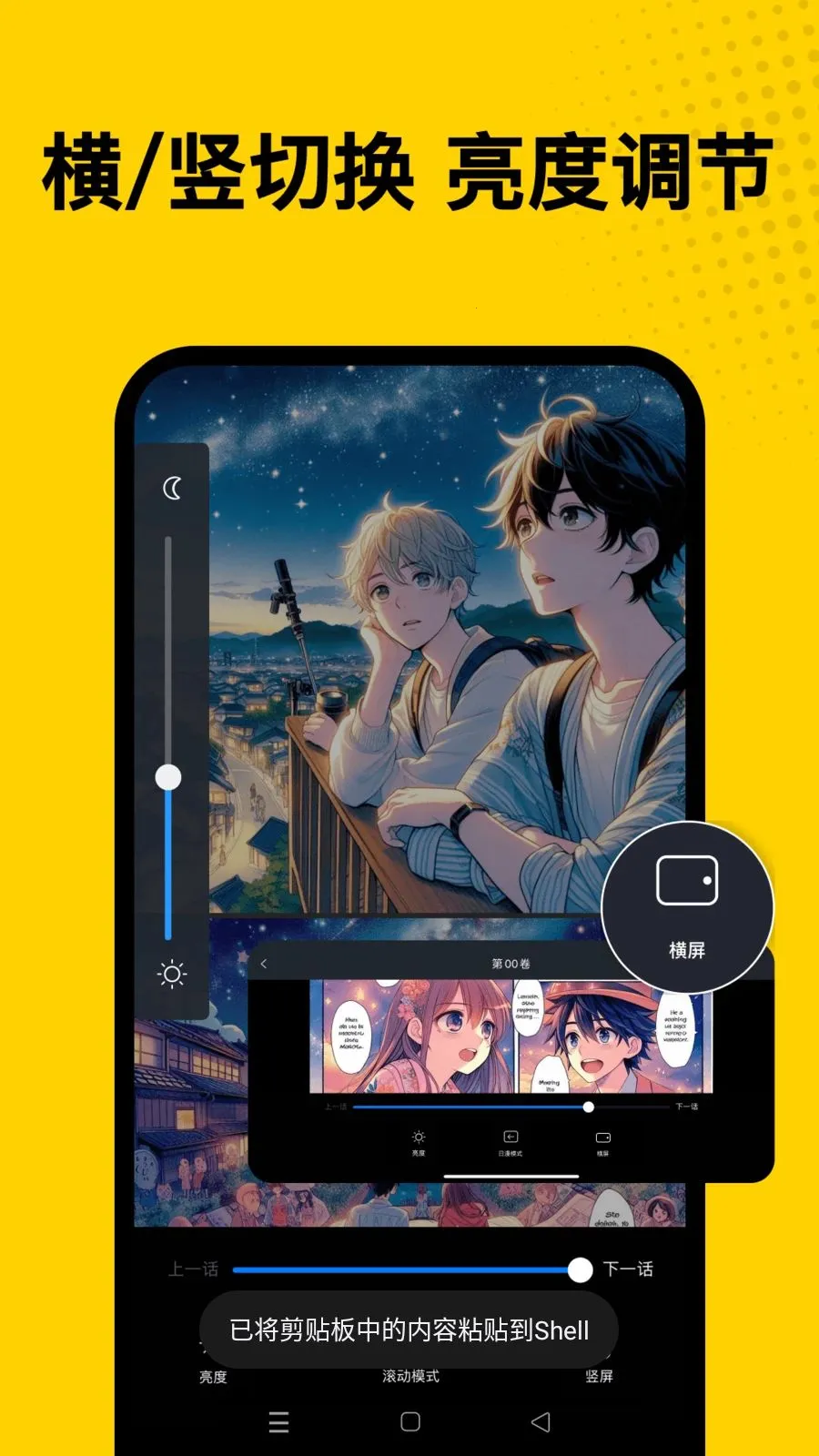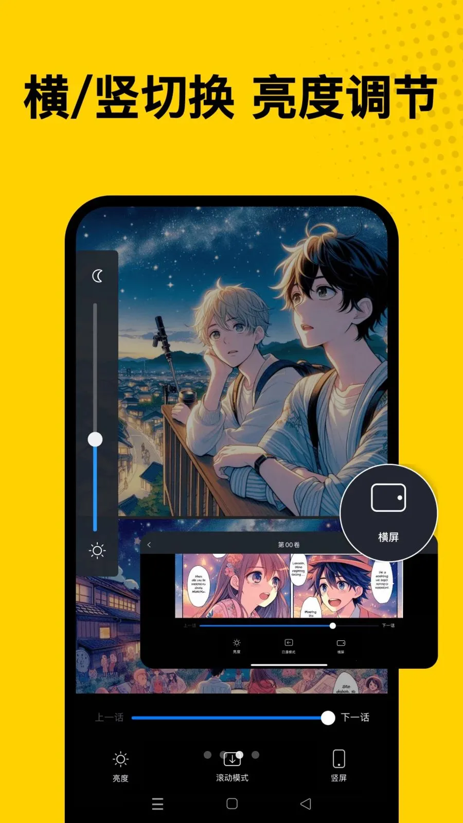 4. 支持横竖屏自由锁定,亮度随心微调,个性定制,打造专属舒适阅读环境,开启沉浸式阅读时光。