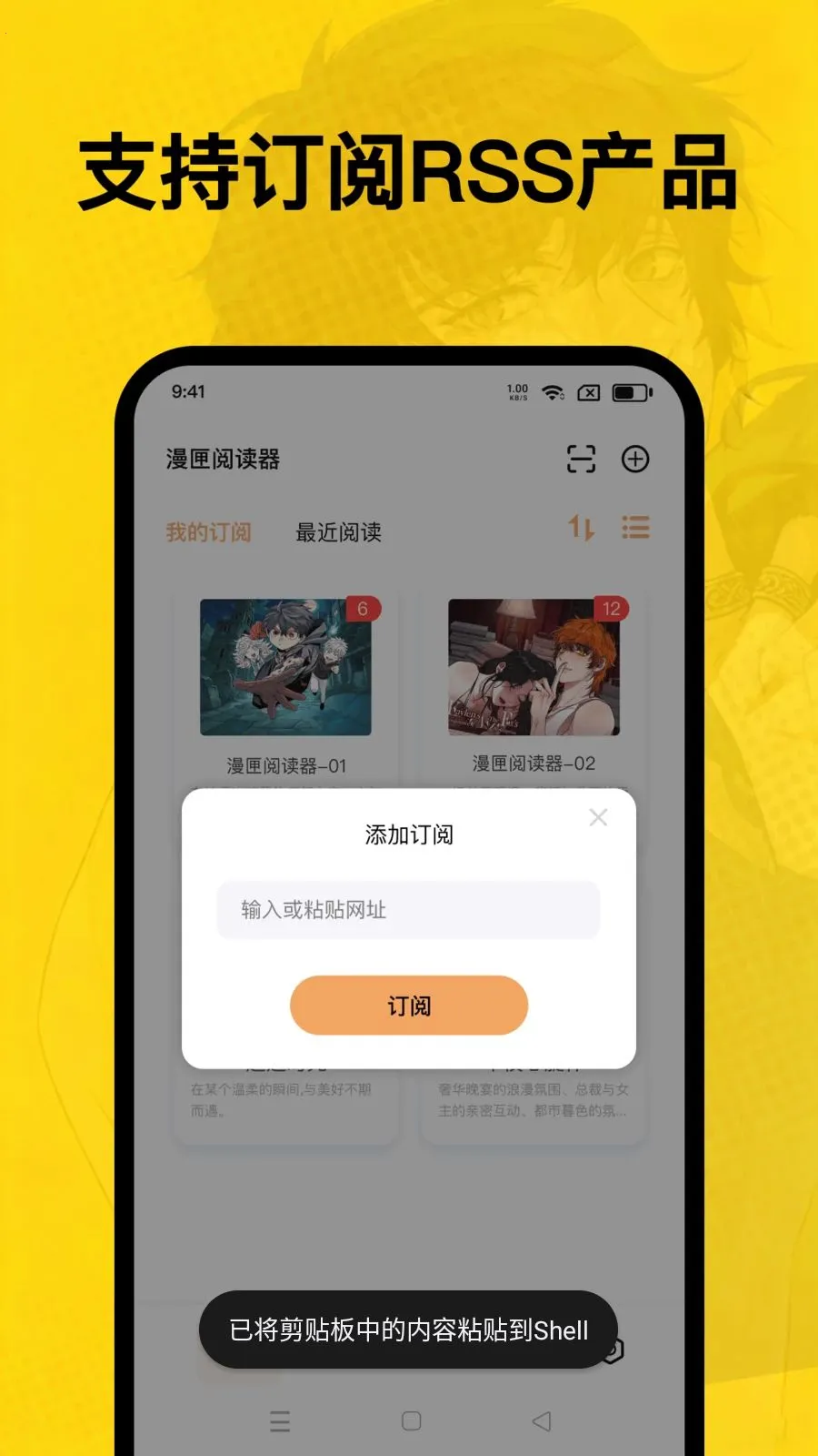 漫匣阅读器支持RSS订阅,可自定义订阅地址导入,能让用户自由获取喜爱的漫画资源。