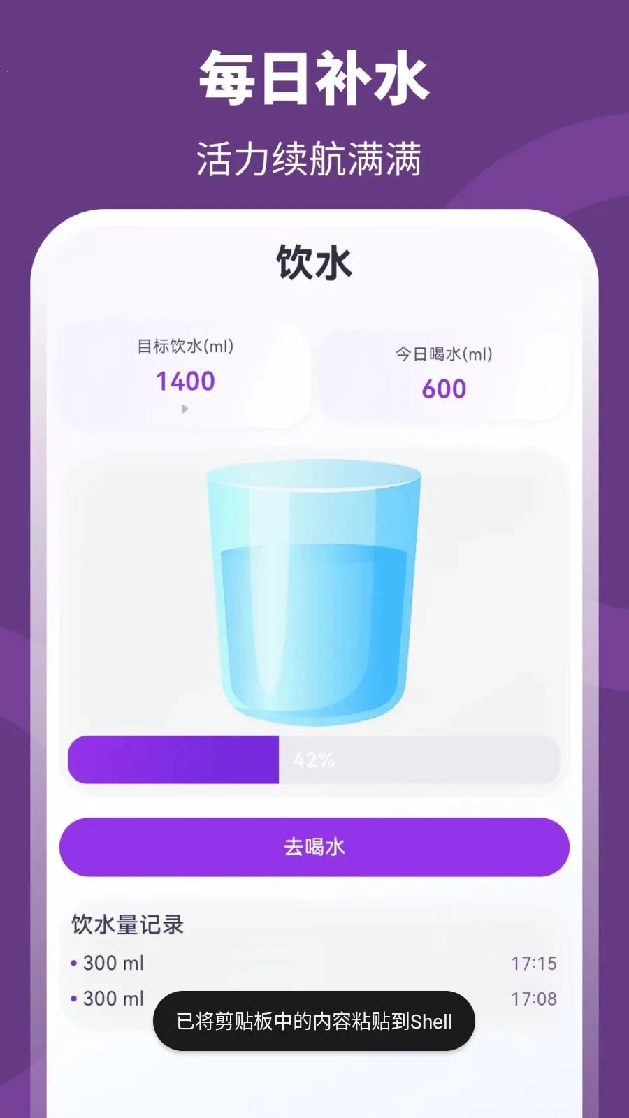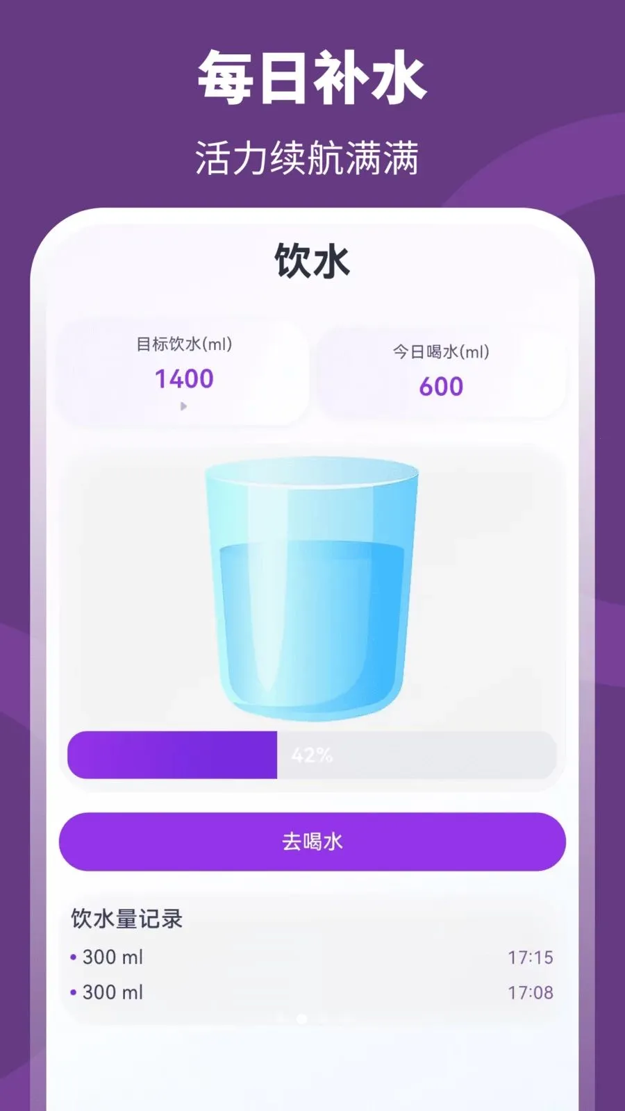 智能饮水提醒贴心,可个性化设目标,记录饮水量,定时提醒,保持活力。