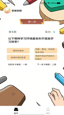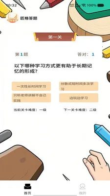 匠格答题是轻量趣味答题应用,以关卡形式呈现学习类题目,含学习方法等内容。界面简洁,支持反馈,分级难度提升兴趣,适合碎片化学习,助用户掌握科学学习技巧。