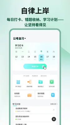 自律学习管理能每日打卡、收纳错题等,让学习进度可视化,全真模考实战可全面提升应试能力。