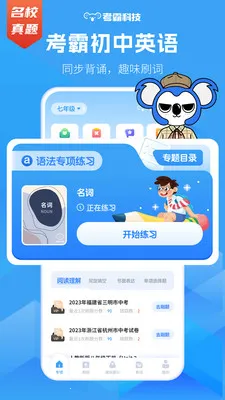 1. 考霸初中英语能轻松减轻家长负担,点燃孩子复习热情,是智能学习好助手。