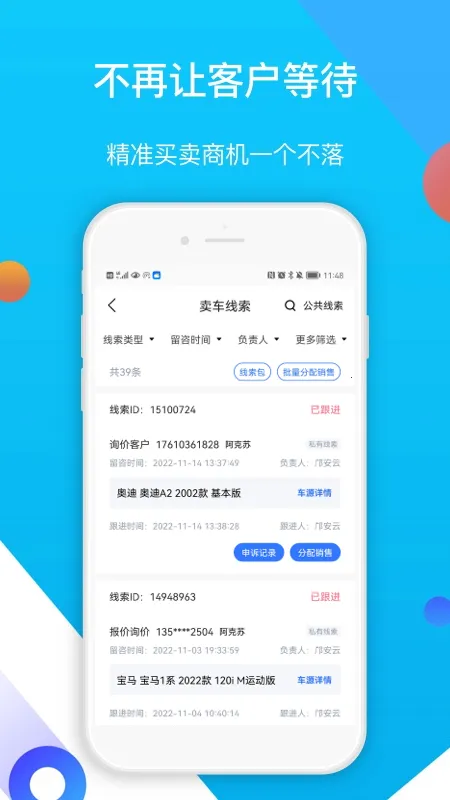 1. 能助力二手车商即时与客户一对一在线沟通,深入了解购车需求。