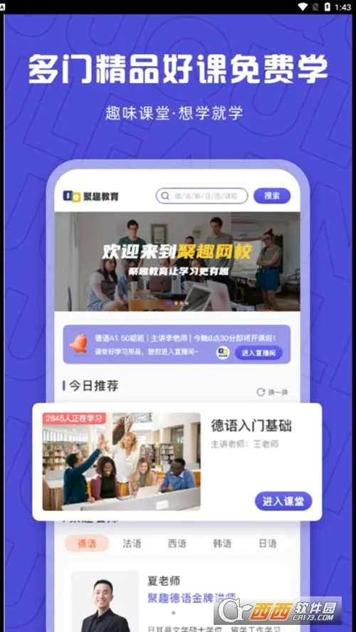 聚趣网校App是集德、法、韩、日、西小语种教学于一体的学习软件。提供职场、兴趣、留学培训,有海量录播与直播课,还有全方位教学服务、智能AI学习系统,专业团队把控质量。