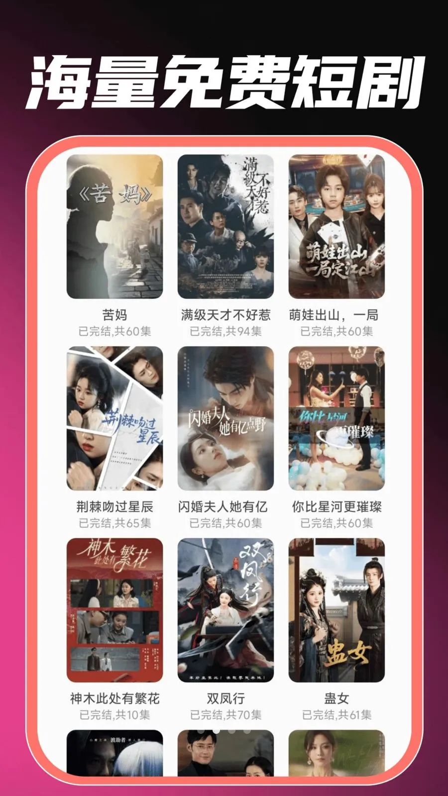 免费看全网短剧最新手机版,海量短剧免费刷,古装甜宠逆袭等热门类型全收录,爆款全集更新。界面简洁,随时随地开启追剧模式,新版本已上架。