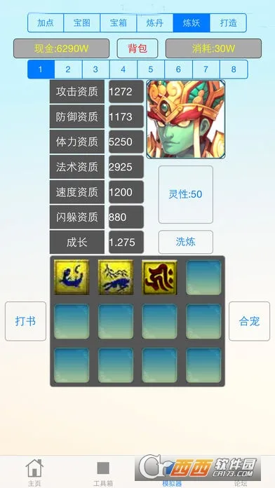 1、加点模拟,快速计算出人物级别和门派的属性数据。