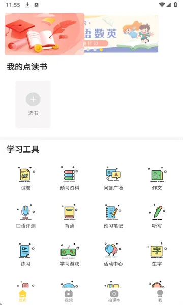 4. 提供同步视频课程与实用学习工具,听说读写功能齐全,方便学生随时随地学习,也便于家长辅导。