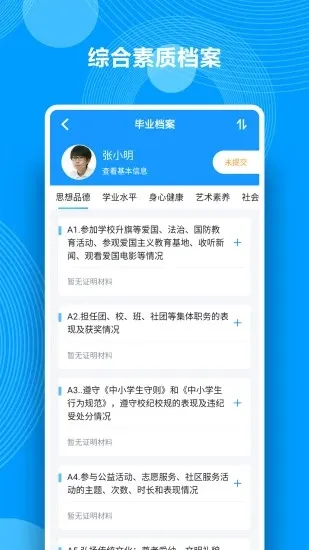 2025最新版本的综合素质评价软件,适配多数学校。教师可便捷记录、分析学生综评数据;学生、家长能参与评价与记录;支持多评价模式,涵盖多维度,助力学生全面发展,功能持续优化 。