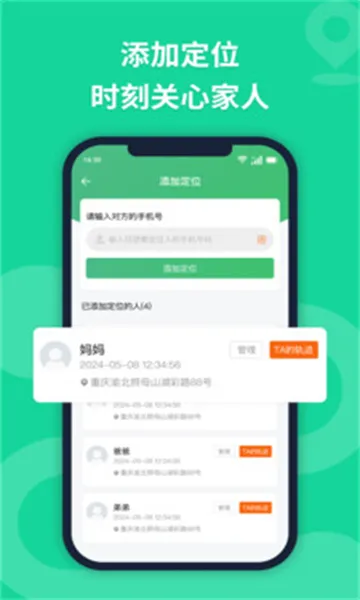 无忧寻迹是家人定位共享软件,可添加亲友手机号绑定,实时共享位置,守护出行安全。更有历史轨迹记录、手机使用报告等功能,关爱家人。