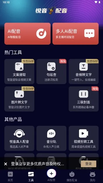 悦音配音安卓版是制片帮旗下智能AI配音软件,提供多语种真人声音,输入文字秒转音频。具有时效性高、音质优、文案丰富等特色,适用于多种场景,操作简单易上手 。