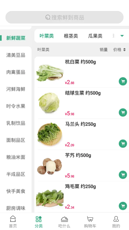 1、品类丰富:涵盖蔬菜水果、肉禽蛋、豆制品等2000个商品,满足一日三餐。