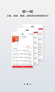 2、阅读模式选择多,不仅有纸书、电子书、有声书,还有每日专家领读、大咖讲书等精读服务。