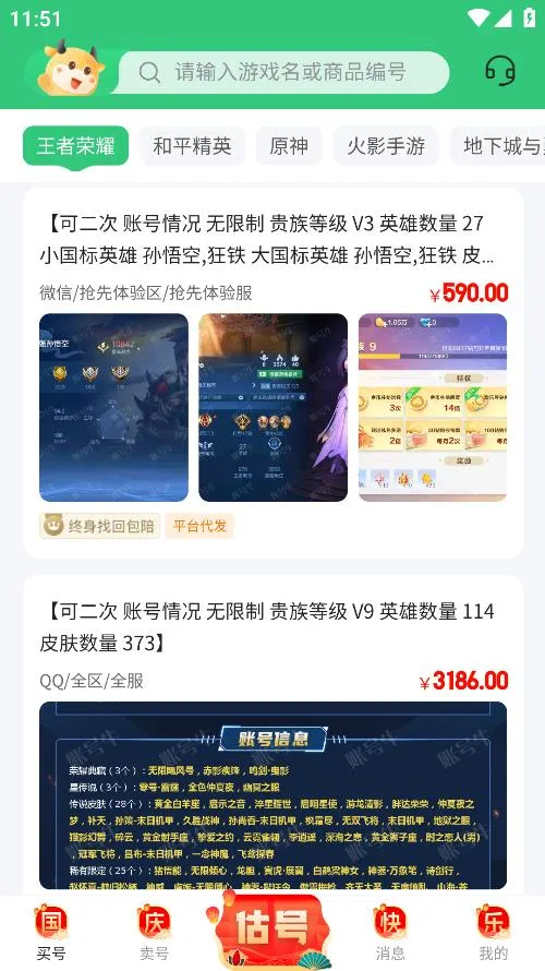 4、支持找回包赔,让买号者放心购买,资金快捷到账。众多用户反馈,在这里交易账号安心又便捷,能轻松了解账号价值,是靠谱的游戏账号交易平台。