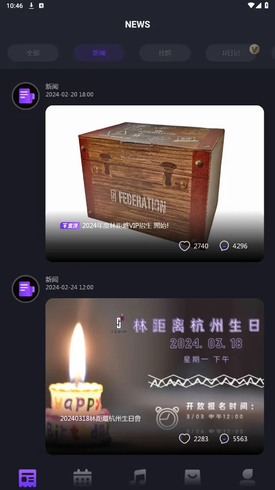 4、官方会整理活动信息,有个性化日历功能,方便追踪安排林俊杰的活动日程。