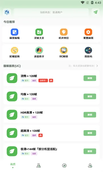 3、功能丰富且实用,不仅能一键解锁最高画质、提升流畅度,还可修改比例、语音包、灵敏度等,有多种皮肤美化选择,还有实用小工具。