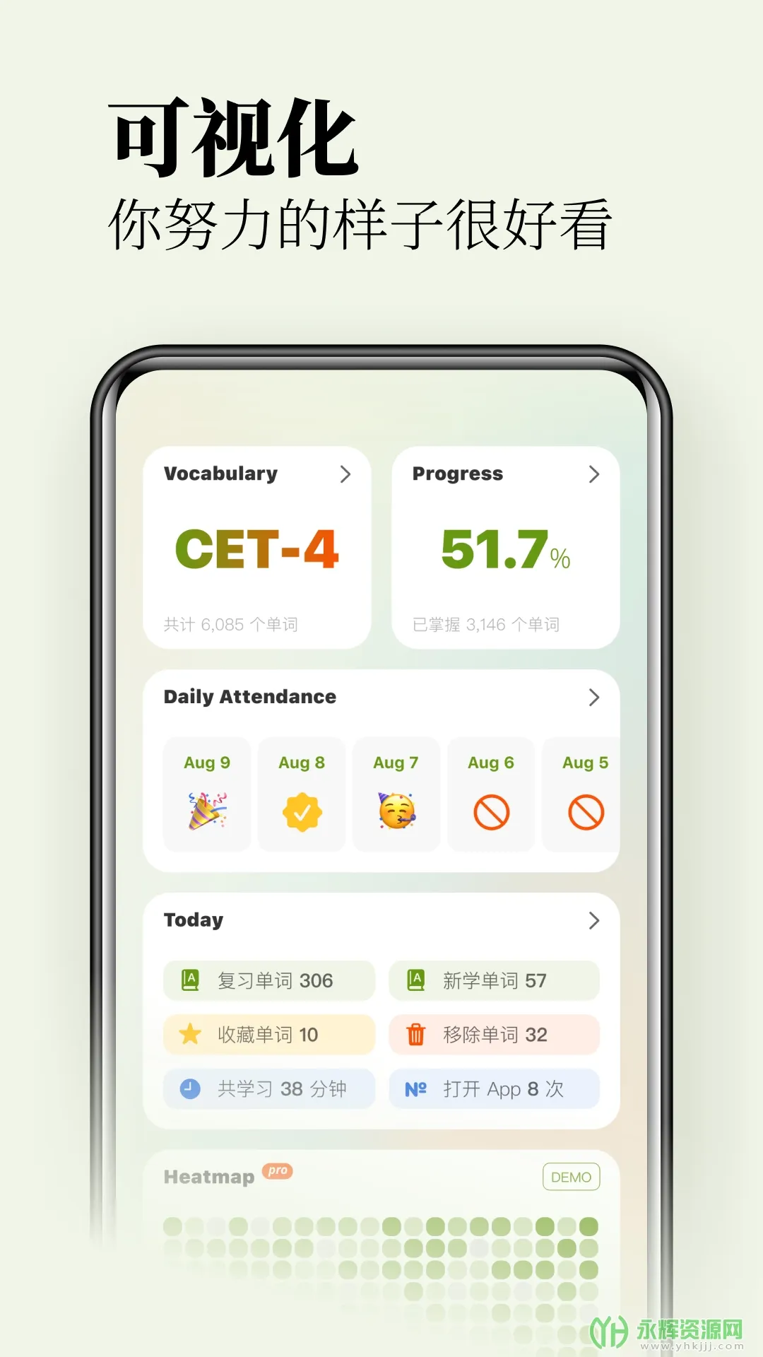 3、提供多种背诵功能,像智能打卡、逐字拼写、跟读模式等,学习过程趣味十足。