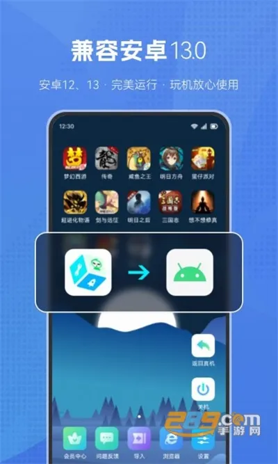 2、兼容性高,完美运行应用游戏,支持安卓13.0系统,还能开启游戏陀螺仪。