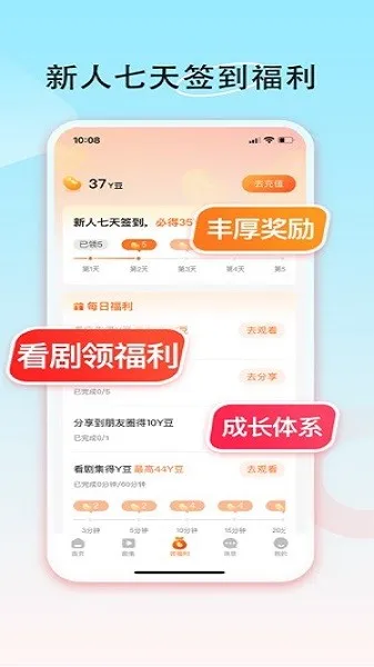 3、福利丰厚,新用户有七天签到福利,日常有每日福利,完成任务就能领取奖励,分享还能赚钱并免费提现。