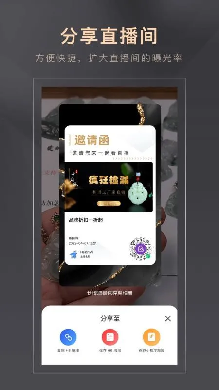 4、工具丰富实用,提供多种直播工具,支持美颜、水印添加等,还能方便快捷分享直播间。