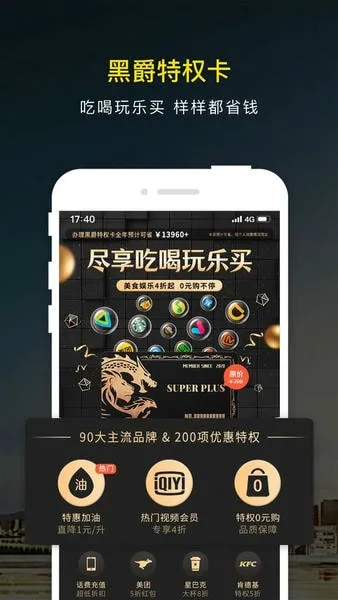 3、优惠丰富:推出九折加油优惠,黑爵特权卡提供吃喝玩乐优惠,让用户享受更多实惠。