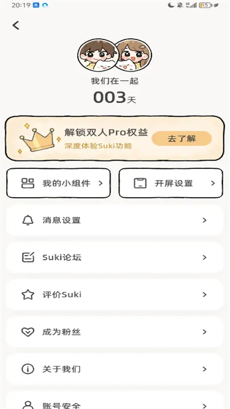 Suki 2025是一款情侣专属聊天软件,功能丰富,涵盖聊天互动、日记记录、生活共享等。内置可爱吉祥物与小屋,有多种趣味挑战,能助力情侣维系关系,提升感情。
