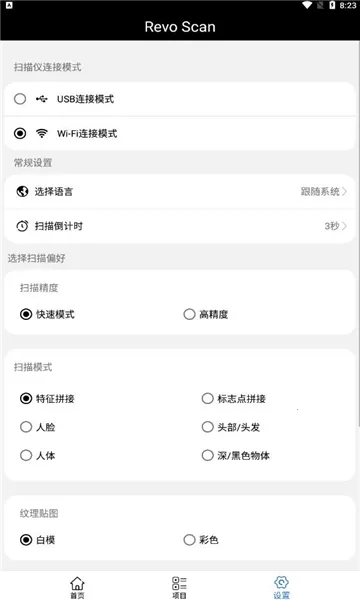 3、扫描模式多样,有六种扫描模式,纹理贴图有彩色和无彩色选项,满足不同扫描需求。