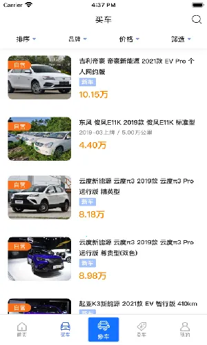 2、智能筛选系统强大,支持按品牌、型号、价格区间、行驶里程等十余个维度组合查询,快速定位目标车辆。