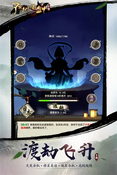 2、独特修仙设定:拥有渡劫飞升、参天悟道等特色修仙内容,鲜明完善的境界等级机制,实力提升明显。