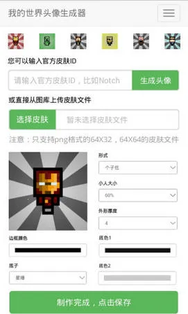 1、支持正版制作,能通过上传png图片,助力玩家制作属于自己的Minecraft风格头像。