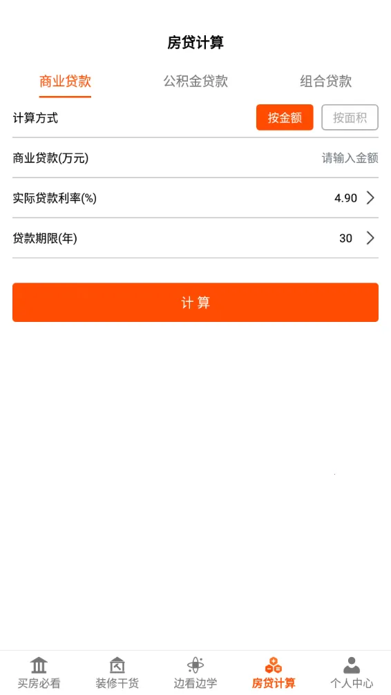 2. 提供房贷计算功能,商业、公积金、组合贷款都能精准算出。