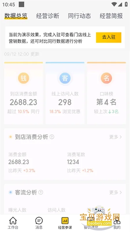 3、精准数据分析:线上客流、交易流水、店铺排名等经营数据尽在掌握,随时随地动态监控核心数据。
