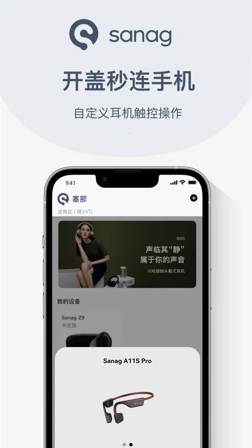 Sanag耳机软件是Sanag智能产品管理平台,可便捷连接手机与硬件,实现固件升级、设备管理等功能。支持自定义触控,兼容多机型,有多种音频调节,还具备实时监测等特性 。