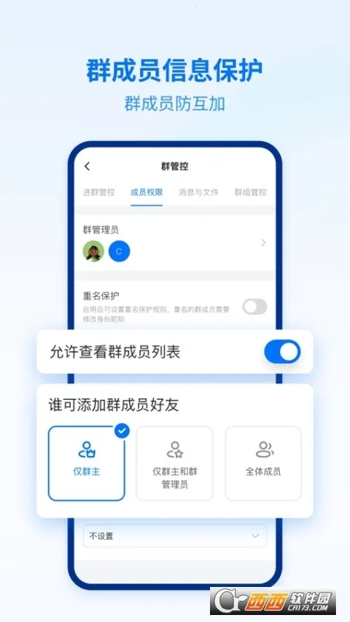 2、群内成员文件等内容受管理员权限管理,防止信息泄露。