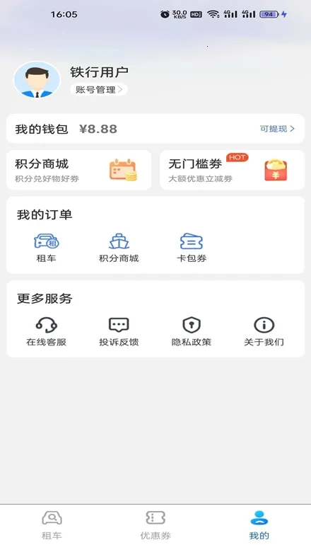 铁行租车是在线租车平台,与多家租车平台合作,车源丰富。新用户有租车礼包,芝麻信用 550 分以上可免押。提供多种特色服务,有 24 小时客服,操作便捷,满足多样出行需求 。