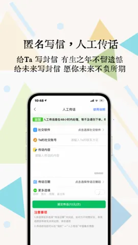 2、功能多样,有线下寄信,信件制作精美且具仪式感;还有人工传话服务,在账号被拉黑等情况时能代为转达话语。